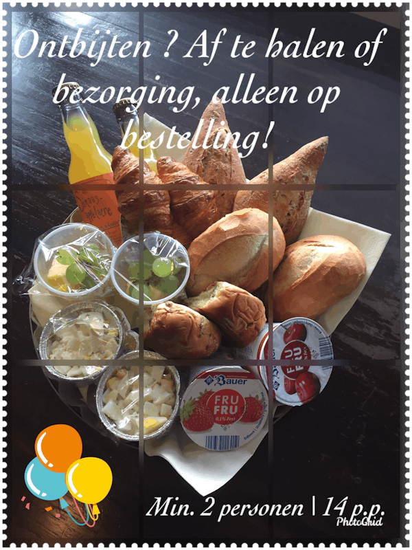 Ons keukenteam werkt met verse producten, goede broodsoorten, zelf samengestelde salades, unieke bereidingswijzes van vlees,vis, vegetarisch en groente (behoud van smaak en vitamines). Om kwaliteit van het gebodene te garanderen beperken wij het aanbod t.o.v. onze gangbare menukaart ( als wij volledig in bedrijf zijn ) zoals men deze van ons gewend is.