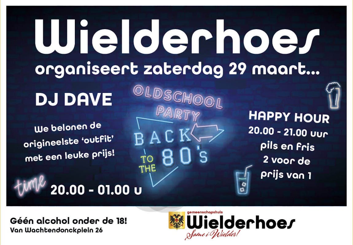 YES, TIME TO PARTY! We organiseren ook dit jaar weer een heuse 80'er jaren party in het Wielderhoes. DJ DAVE zal er samen met ons een feestje van maken. En... de meest originele ' outfit' maakt ook nog eens kans op een leuke prijs… Jij komt toch zeker ook?