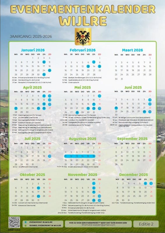 De nieuwe versie van de evenementenkalender voor Wielder is weer bijgewerkt met nieuwe activiteiten. De kalender kan bekeken worden via deze link en op papier op de bekende adressen.