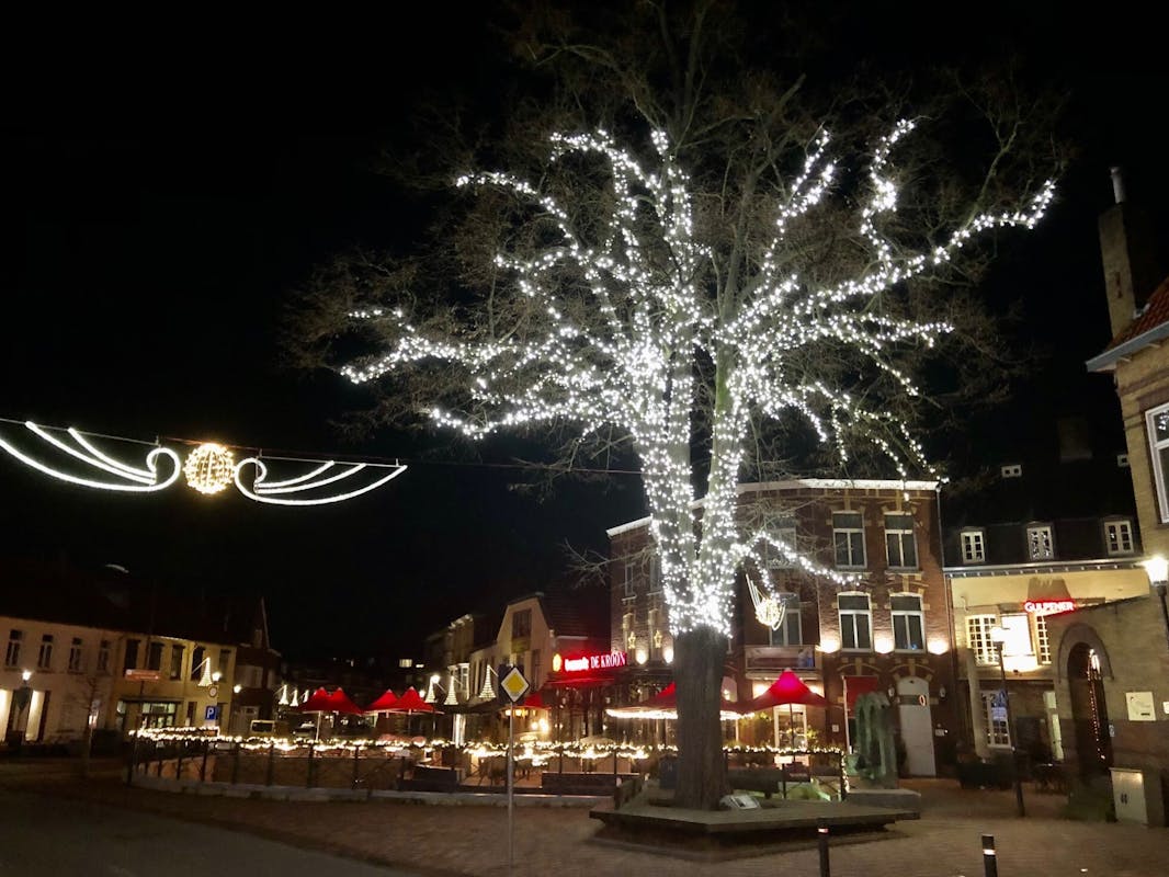 Zondagmiddag en maandag is de ondernemersvereniging ‘Samenwerking en Promotie Kern Gulpen’ (SPKG) vele uren in de weer geweest om overal in het centrum zogenaamde ‘Glowtrees’ op te hangen als onderdeel van de feestverlichting in aanloop naar Kerstmis en de jaarwisseling. Ook de balustrades langs de Gulp zijn verlicht. Eerder zorgde SPKG al voor de mega verlichting in de grote boom op de markt, die inmiddels overal in de regio bekend staat als de ‘Boom van Verbondenheid’ in deze coronatijd. Op allerlei plekken in Gulpen zie je ondernemers ook aan de slag om hun eigen zaak er zo sfeervol mogelijk uit te laten zien. Ook de natuur helpt mee. Zo staat in de Pr. Ireneweg in de bocht een prachtige boom met vruchtjes als natuurlijke ‘lichtjes’ (zie foto). Binnenkort worden op diverse plekken nog kerstbomen geplaatst. Met de gemeente bespreekt SPKG maandag 30 november welke geplande sfeeractiviteiten in de dagen voor Kerstmis voldoende coronaproof zijn.