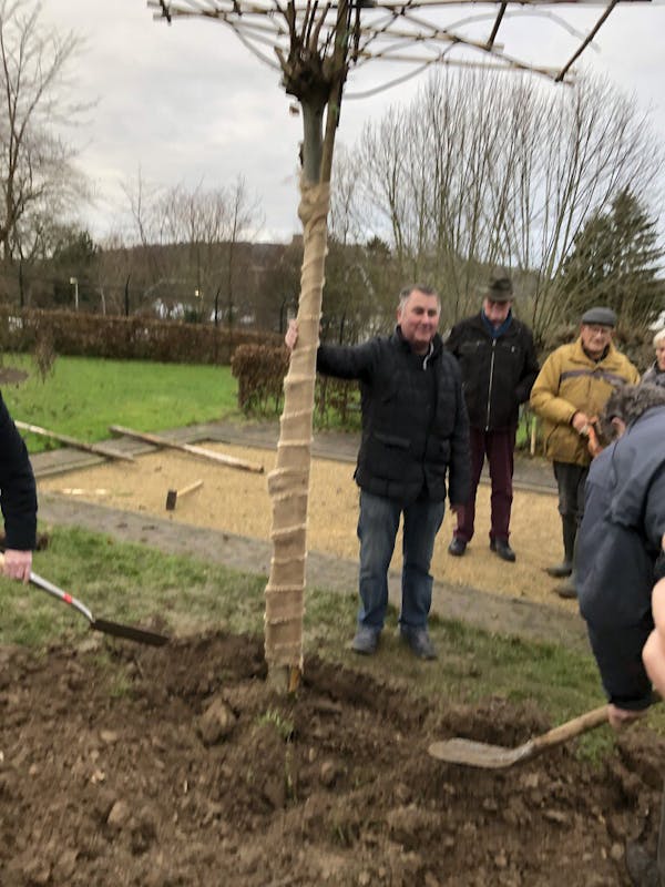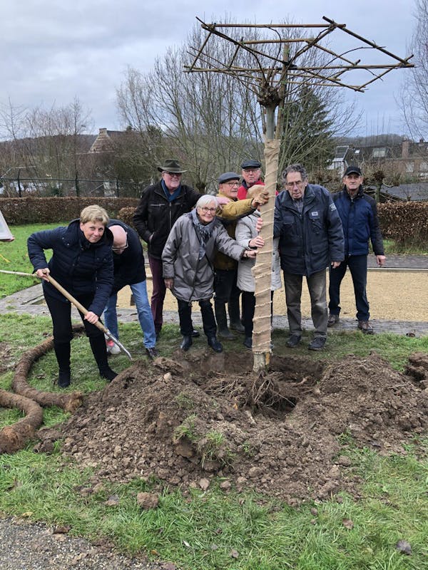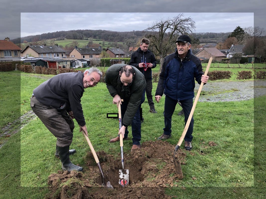 Bij de samenwerking/burgerparticipatie van de jeu-de-boules spelers van de ouderenvereniging "Levensvreugd door Vriendschap", het bestuur van MBG, leden van de snoeibrigade MBG en steun en toeverlaat Edward Vanderheijden zijn een viertal dakplatanen aangeplant om een schaduwplek te creรซren bij de jeu-de-boules baan in de dorpsgaard het Groene Hart van Mechelen. Het werd hen niet gemakkelijk gemaakt door de harde ondergrond met veel stenen en oude vastzittende palen in een koude ochtend. Deze wijze mannen hadden wellicht ouderwetse maar wel adequate oplossingen en dachten 'dat varkentje zullen wij wel even wassen', wat ook gebeurde. Ook de wethouders van de gemeente Gulpen-Wittem, Marion Vanderkleij en Jos Last kwamen de leden even een 'hart onder de riem steken'.
