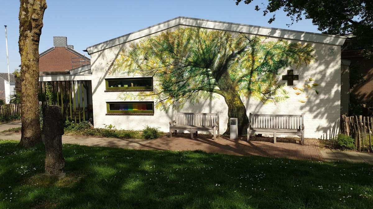 Verweven in de schaduwen van de omringende bomen staat hij er: De 'Epense Levensboom'.
