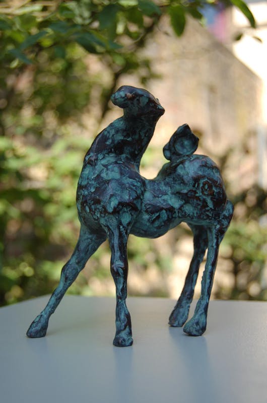 Mieke studeerde aan de Academie Beeldende Kunsten in Maastricht. Haar passie voor paarden en brons heeft zij in haar beelden gecombineerd.