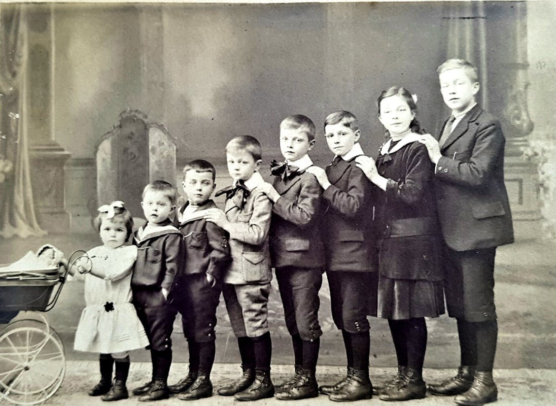 Vorige week gaf een schoonzus me een doos met oude spullen mee. Ze was haar huis ‘aan het opschonen’ en had oude spulletjes verzameld, die mijn broer als ‘familie memorabilia’ verzameld en bewaard had, die mij, dacht zij, méér zouden zeggen dan haar. Nou ben ik zelf niet zó’n kenner van onze oude familiegeschiedenis; ik was thuis de jongste en kreeg het meeste van de generatie boven mij mee uit verhalen. Verhalen over omes en tantes, die ik slechts een enkele keer gezien had op een groot feest of een druk bezochte begrafenis, waar ik gekust werd door allerlei vreemde figuren, die vonden dat ik precies het snuutje van Riet had, of sprekend de ogen van Gerrit. DIE twee kende ik. Dat waren mijn vader en moeder, maar dat gaf die vreemde lui niet ’t recht om mij te knuffelen en natte, kirrende zoenen te geven. Mijn opa’s en oma’s heb ik nooit in levende lijve gezien, wel op foto’s op de schoorsteenmantel. Eén opa keek mij dagelijks van boven de kachel boos aan vanonder zijn borstelige wenkbrauwen, de rest keek wat neutraler de wereld in in hun zilveren fotolijstjes. Eén oma heeft mij ooit nog wél gezien, getuige een foto waarop zij zit met mij op schoot. Althans iemand zei me dat ik het kind op schoot bij die oude mevrouw was. Kortom: mijn kennis van de familie heeft heel wat zwarte gaten. Er werd door mijn ouders overigens ook niet veel over die familie verteld in de tijd dat ik wél tot de jaren des onderscheids was gekomen. Mijn ouders waren niet scheutig met anekdotes en weetjes uit de familiegeschiedenis. Mijn ene opa was boer geweest, dat wist ik wel en de andere koster, maar daar hield het wel zo’n beetje mee op. En nu staarden die me aan vanuit de doos van mijn broer, omgeven door hun gezinnen. En dat laatste wil wat zeggen. Ik mag dan wel niks weten over mijn opa’s, maar de doos zat vol bewijzen dat ze seksueel actief waren geweest. Me dunkt toch een intiem detail. Met elk deel dat ik uit de doos pakte sloop bij mij een vreemd gevoel van sensatie naar binnen: via die voorwerpen, brieven, foto’s ontvouwde zich een wereld, die een stukje de bron bloot legde waaruit ik ooit was opgeborreld. Van vaders zijde waren de aantallen foto’s wat schaarser, die hadden geen tijd voor foto’s, die moesten hooien of melken. De familie van mijn moeder ging vaker op statieportret bij een heuse fotograaf. Eentje die goed kon fotograferen, want die beelden waren stuk voor stuk én heel leuk qua beeld én haarscherp. Dat moest een dure fotograaf geweest zijn, dat zag je ook al aan de manier waarop hij zijn kunstwerken in gepreste passepartouts aanleverde met zijn naam in sierletters achterop. Hoe opa die fotosessies kon betalen weet ik niet, maar vast stond dat koster zijn toentertijd beter betaalde dan tegenwoordig. Mijn interesse was gewekt en ik ging op zwerftocht door mijn verleden.
