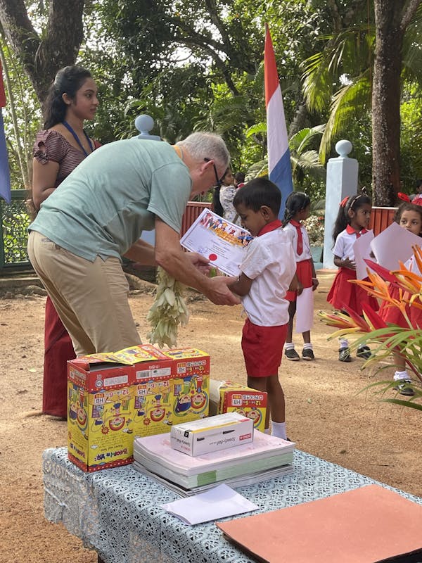 Dit is het schooltje en de plaats waar de oorsprong van onze stichting ligt. Het schooltje wordt vanaf de oprichting in 1986 gerund door de boeddhistische monnik Gunarathana, die daarvoor met onze pionier pater Harrie van der Looij de basis legde.