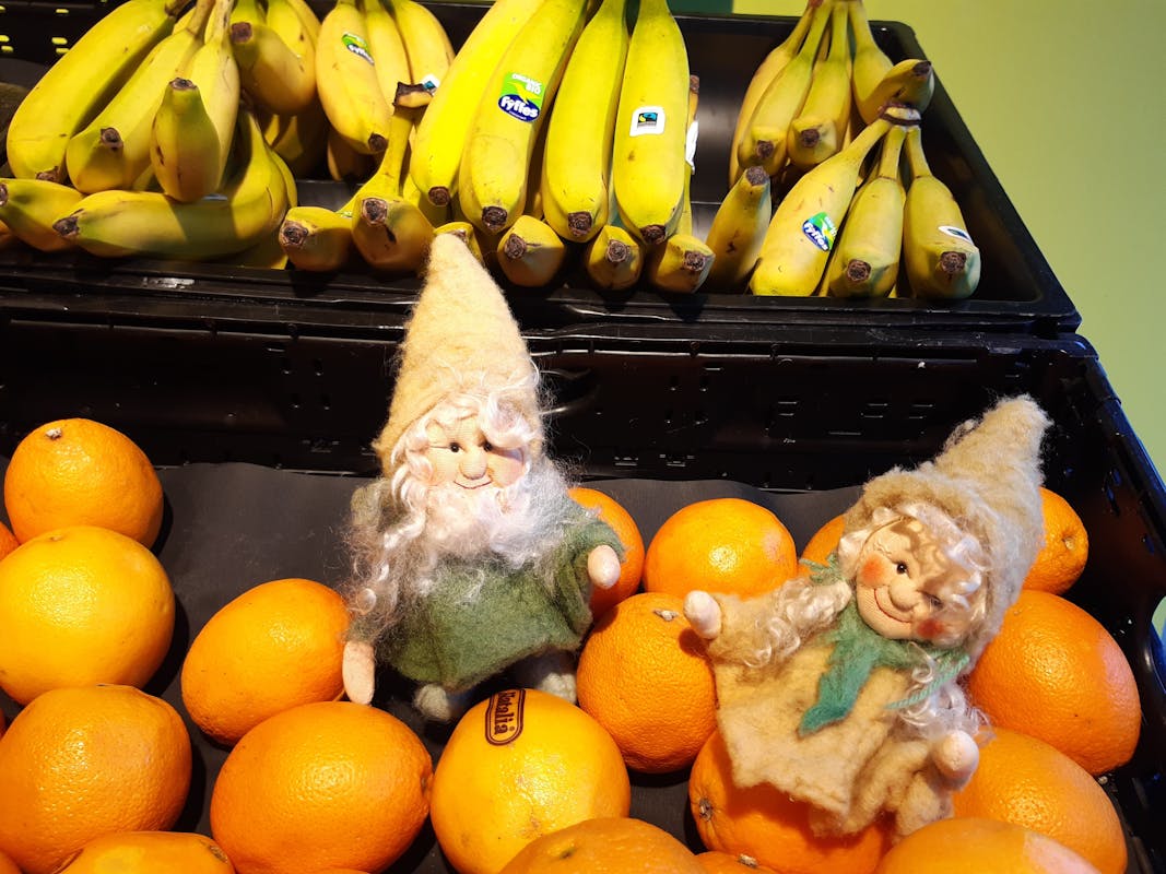 “Doen we,” vindt Madelief en samen met de Sint vullen ze de winkelwagen met het fruit.