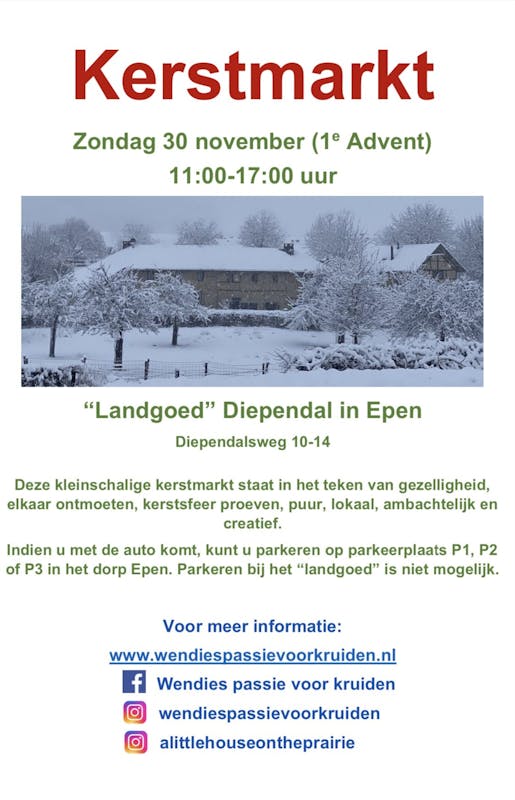 Het aftellen is begonnen. Nog 8 dagen tot kerstmarkt 'Landgoed' Diependal op zondag 30 november van 11.00 tot 17.00 uur.