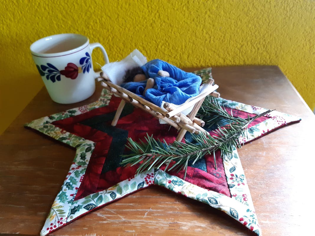 “Dat is good, maedje,” zegt opa en blaast wat zaagsel weg dat in het kribke beland is. “Klaar.”