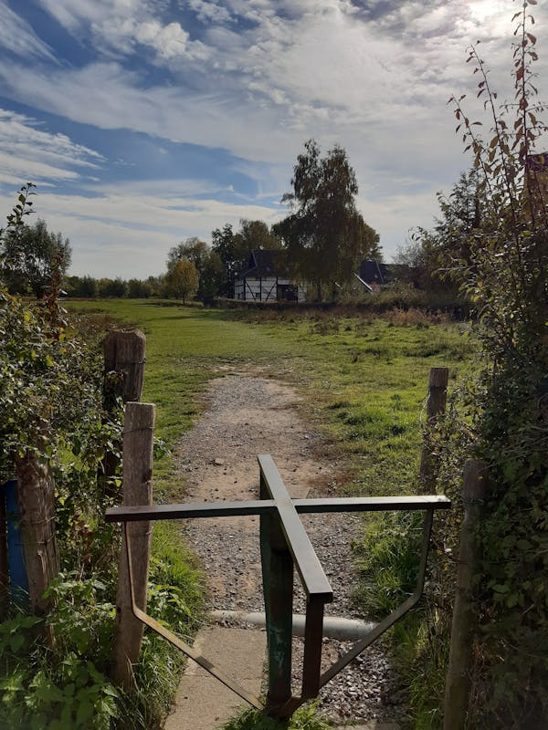 Ze lopen aan de molen voorbij en verder, tot ze even buiten het dorp linksaf slaan en over een bruggetje gaan.