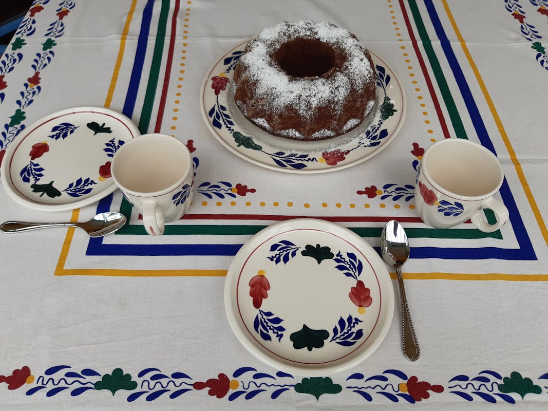 “Voorzichtig," waarschuwt oma. “Voorzichtig, die is nog heet.”