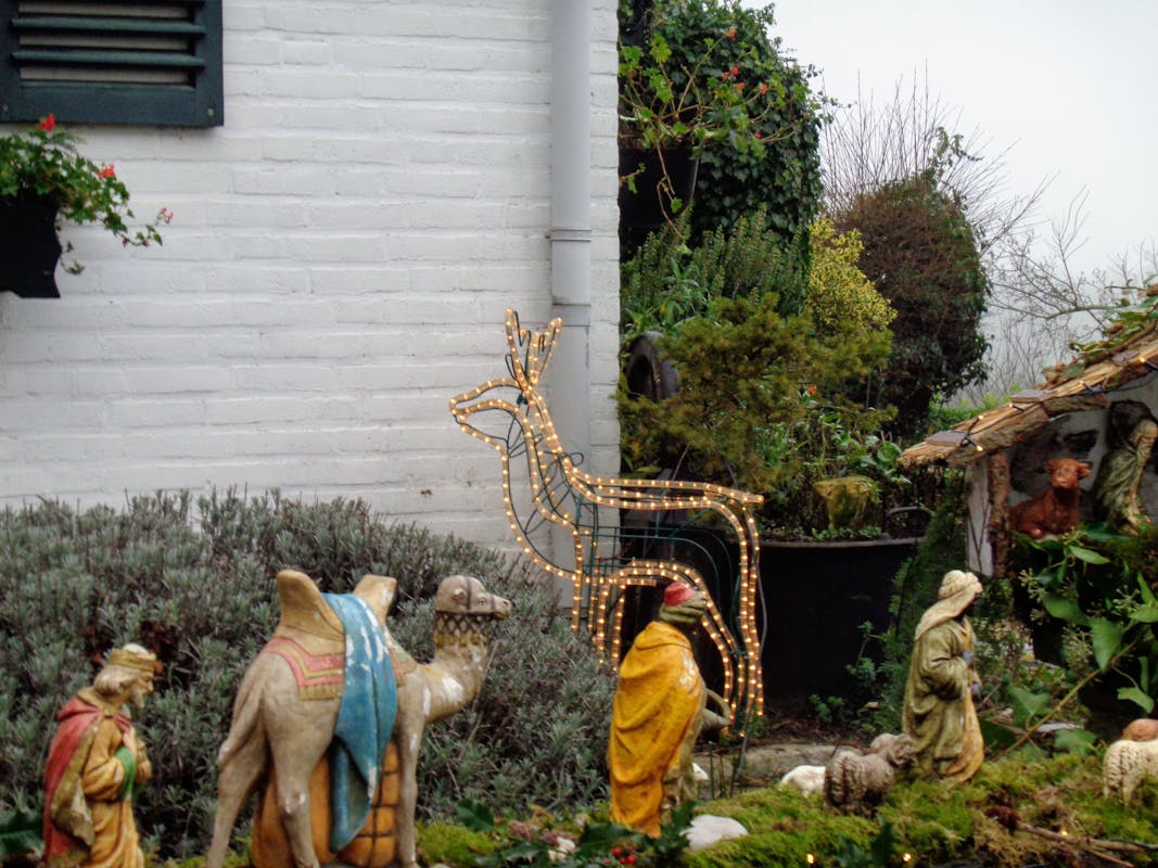 Hij is op zoek gegaan naar een mooie klassieke beeldengroep en heeft die gevonden bij een handelaar die er een op zolder had staan. Hij kreeg er ook een grote kameel bij. De stal heeft hij zelf gemaakt.