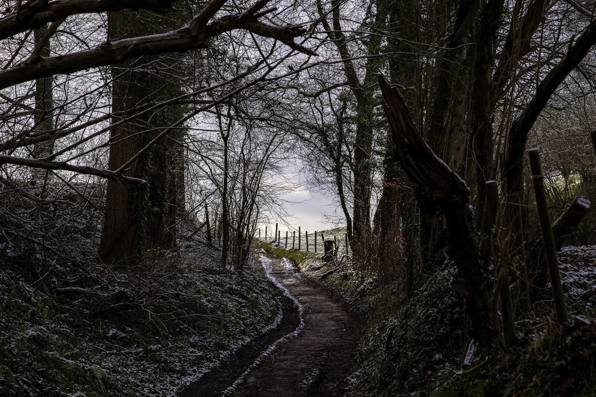 - Wintersfeer in de regio, Heischenweg bospad omhoog