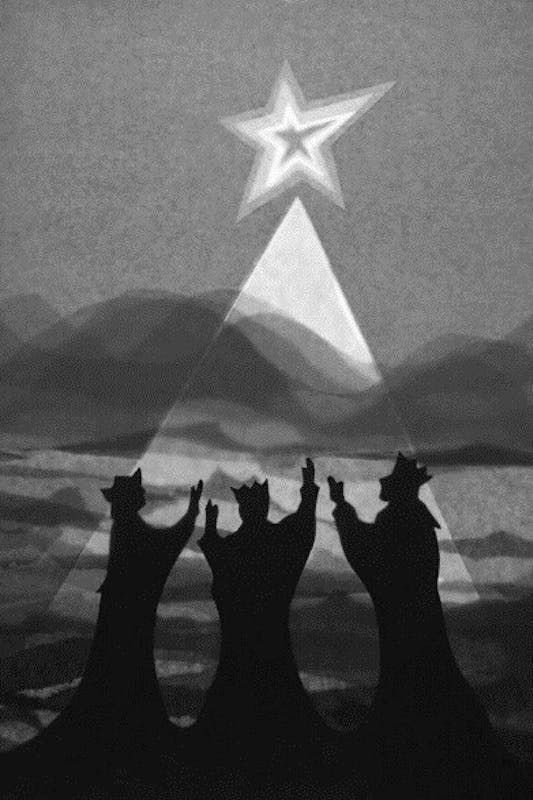 🌟 In een Russisch verhaal gaat een vierde koning (of wijze) op weg om het pasgeboren koningskind te zoeken en met geschenken te eren. Onderweg echter ontmoet hij telkens mensen die zijn hulp nodig hebben en zo is hij vele jaren onderweg. Eindelijk bereikt hij Jeruzalem; en plots ziet hij de ster, die hij jaren geleden gevolgd had. Zo komt hij bij de heuvel waar drie grote kruisen staan. De man in het midden kijkt hem vol liefde aan en de wijze beseft; nu heb ik de koning gevonden.