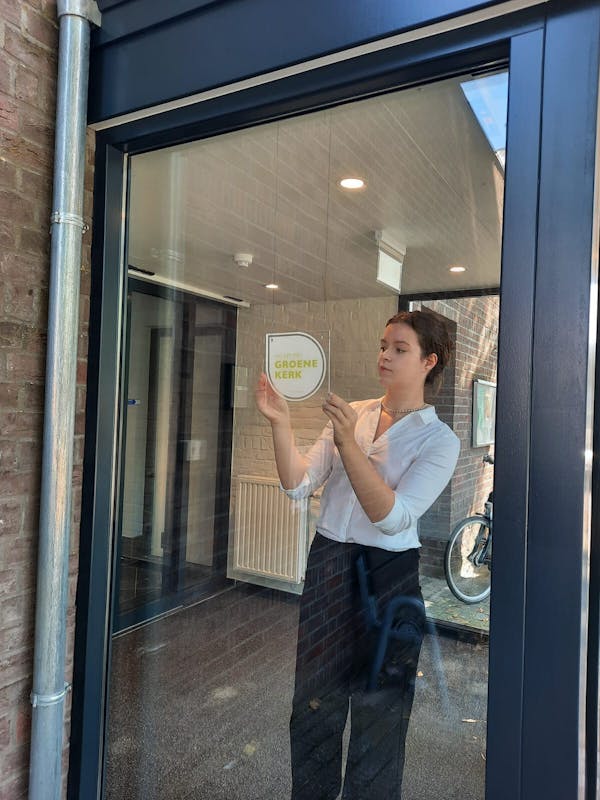 "Niet dat we al zo heel erg groen zijn", zegt Ageeth Potma van de werkgroep die zich met het thema duurzaamheid bezighoudt, "maar we willen het wel worden. We willen regelmatig stappen gaan zetten op weg naar een duurzame organisatie, duurzame kerk en duurzame samenleving."