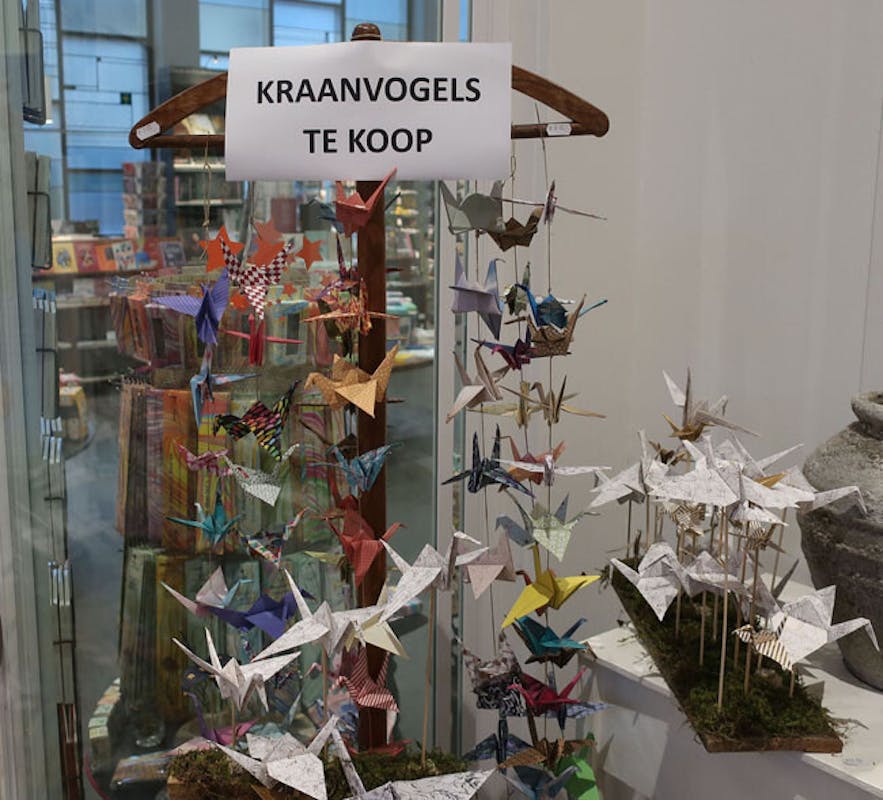 Ook in Klooster Wittem is dus gevouwen, als uitdrukking van ons verlangen naar vrede. Doel was 1000 kraanvogels, maar het zijn er uiteindelijk 5000 geworden.