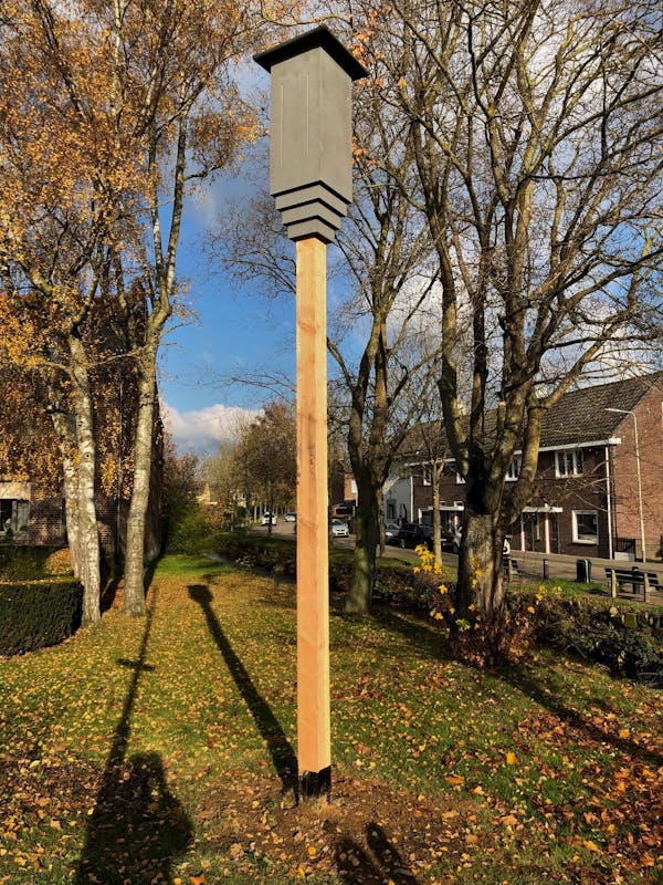 Het mysterie van de twee grote Vleermuispalen in hartje Gulpen is opgelost. Ze zijn geplaatst door Krijtland Wonen. Ron Hounjet (projectleider Nieuwbouw): “Binnen nu en twee jaar wordt, zoals bekend, door ons een aantal woningen in de Nieuwstraat en Burggraverweg gesloopt. Als je woningen sloopt, wordt altijd heel goed gekeken naar de gevolgen voor het milieu. Zo ben je verplicht te onderzoeken of bij het sloopproces de leefwereld van beschermde dieren niet wordt aangetast. Wij hebben daarvoor een ecoloog ingeschakeld die in nachtelijke uren ontdekte dat er in en in de buurt van die huizen (in bomen en heggen) vleermuizen actief zijn. Toen hadden we twee keuzes: of aan de buurtbewoners toestemming vragen aan de muren van hun huizen kastjes te plaatsen waarin deze vleermuizen kunnen overwinteren en paren. Ervaring leert dat dit niet iedereen even prettig vindt. Daarom hebben we voor de toegestane variant gekozen in de vorm van deze twee grote palen waarin samen plaats is voor 16 vleermuizen. We hebben daarvoor toestemming gevraagd aan provincie, gemeente en waterschap en ook de directe buurtbewoners geïnformeerd. De palen blijven er staan tot een jaar na de nieuwbouw.’