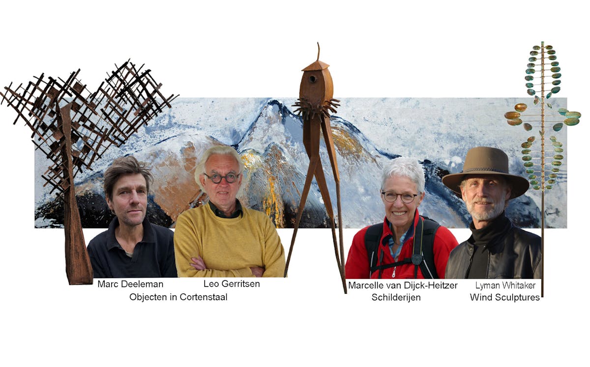 Op onze locatie (nr. 7): Akelei 3 in Gulpen zijn naast mijn nieuwste schilderijen, de bijzondere metalen objecten en windsculpturen te zien van de drie gastexposanten: Leo Gerritsen, Marc Deeleman en Lyman Whitaker. Klik op onderstaande link voor korte informatie over de kunstenaars en hun werken.