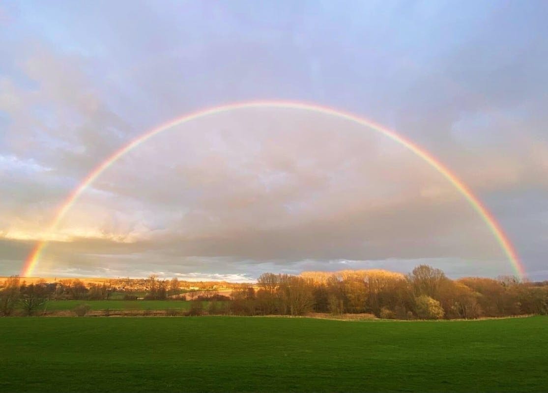 Een prachtige regenboog vandaag in het Heuvelland. Onder andere gefotografeerd door Patricia Savelberg.