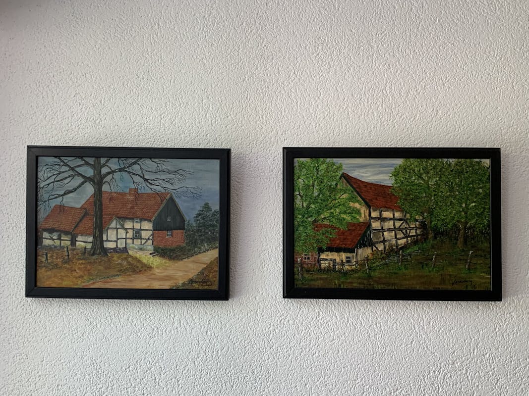 Afgelopen zondag bij de garagesale van Epen 2 prachtige schilderijtjes gekocht, gemaakt door een schilder uit Epen, Anton Mordang. Ik ben er heel blij mee, ze hangen prachtig in onze keuken in Epen. De rechter is Terziet. Weet iemand waar het huisje op het linker schilderijtje staat.
