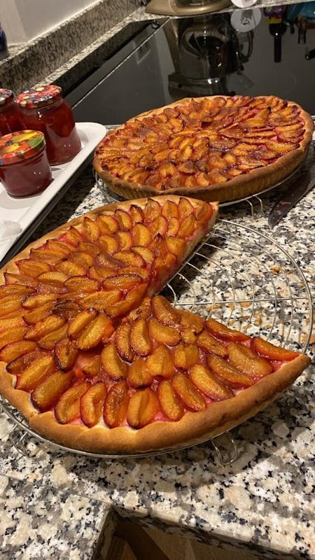 (Met dank aan Annemie Damoiseaux-Schwanen voor de foto van haar pruimenvlaai.)