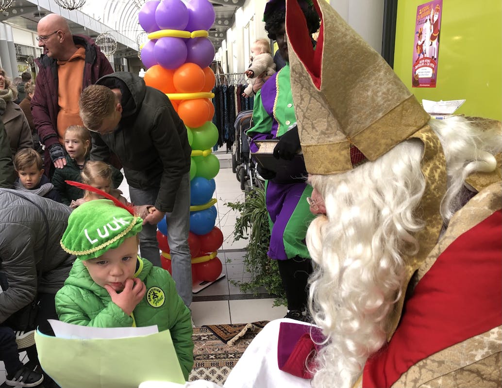 In het kloppend winkelhart van het Heuvelland, de winkelpassage aan het Looiersplein, kreeg elk kind wat lekkers en ook nog eens een paar cadeautjes. Sint ging met elk kind in gesprek, meestal over de tekening die hij alvast voor zijn verjaardag kreeg.