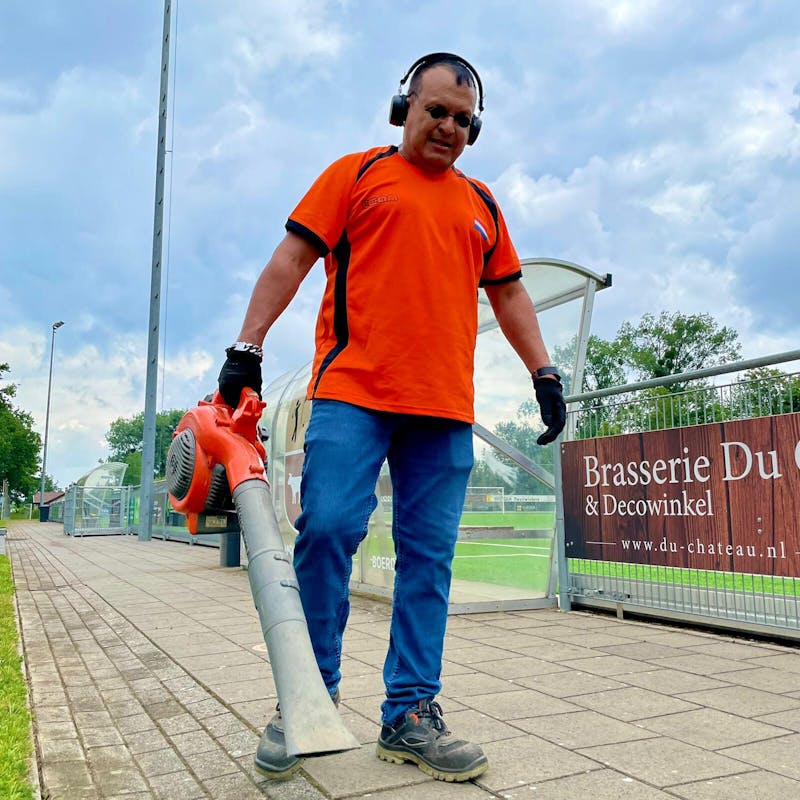 ‘Ik kom uit Aruba, mijn naam is Humbert Reeder, maar iedereen hier noemt me Humberto. Na mijn scheiding werd ik depressief en raakte ik verslaafd aan alcohol. Er brak toen een lange, vervelende periode aan. Te lang om allemaal te vertellen. Maar vanaf ik hij Herstelzorg Heuvelland in Zorgdomein Wilderberg onder begeleiding woon, heb ik mijn leven weer veel beter op orde. Nu raak ik geen druppel alcohol meer aan. Ook met roken ben ik van de ene op de andere dag gestopt. Dat heb ik mezelf opgelegd. Ik ben heel blij dat ik bij de Groene Jongens van FC Gulpen mocht komen. Ik ben een allround klusjesman. Begonnen met poetsen en onkruid verwijderen, maar ik kan ook goed met machines en materialen overweg. Volg nu ook een basiscursus om handhaver te kunnen worden. De eerste keer heb ik het examen net niet gehaald, kwam drie puntjes tekort omdat ik de meerkeuzevragen te snel had gemaakt. Maar ik ga door totdat ik dat diploma heb. Want ik wil dat mijn kinderen weer met trots over mij praten, zoals ik trots ben op wat zij bereikt hebben. Een van hen is psycholoog in Utrecht. Mooi, toch? En de vrienden van de Groene Jongens van FC Gulpen helpen me ook om me goed te blijven voelen. Elke dinsdagochtend kan ik iets betekenen voor de club en het is hier zo gezellig onder elkaar. Bij FC Gulpen voelde ik me snel thuis.’