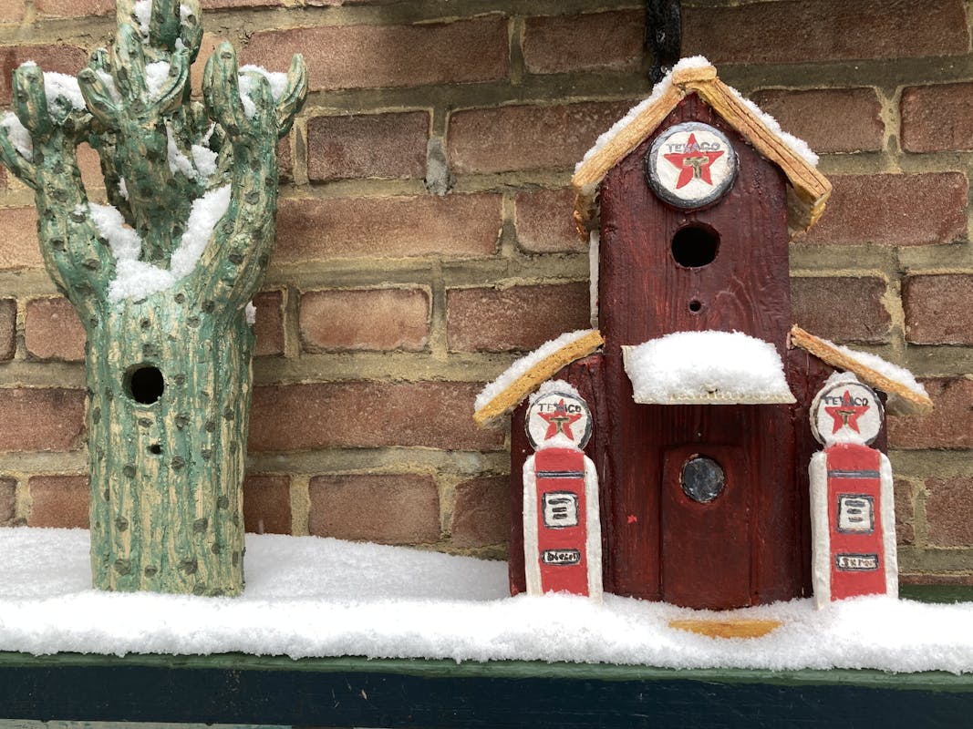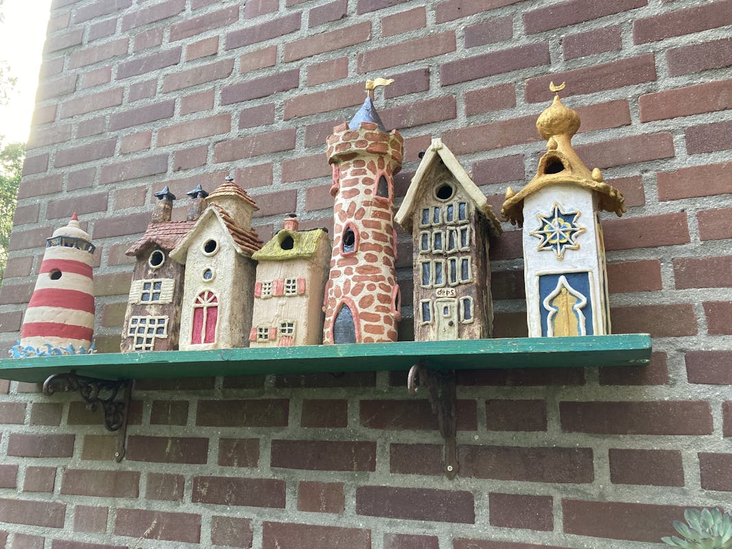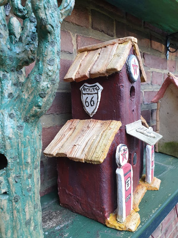 Mijn kleinkinderen vonden de nestelende vogels zo leuk, dat ik voor hen ‘echte’ vogelhuisjes ging maken. Dit doe ik tot op de dag van vandaag nog steeds met veel plezier. De huisjes kunnen elk denkbare vorm hebben, waarbij ik mijn inspiratie haal uit mijn directe omgeving: thuis of tijdens reizen