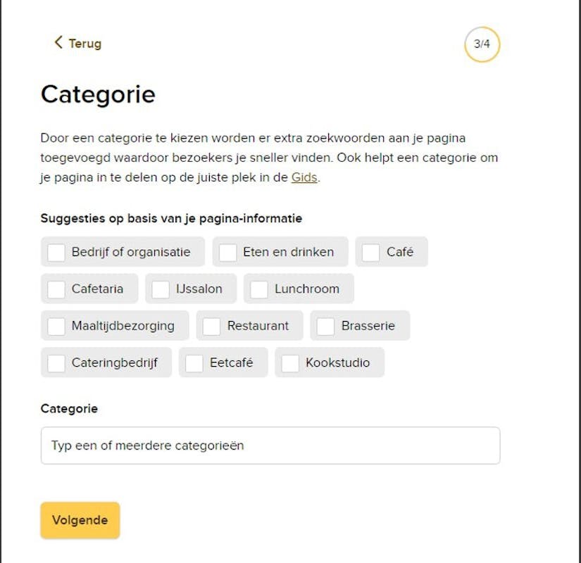 Bij het aanmaken van een pagina kun je nu makkelijker een categorieën kiezen. Het systeem analyseert jouw input voor de ‘Naam’ en ‘Beschrijving’ en doet op basis hiervan al een aantal categoriesuggesties. Hier hoef je dus niet zelf over na te denken.