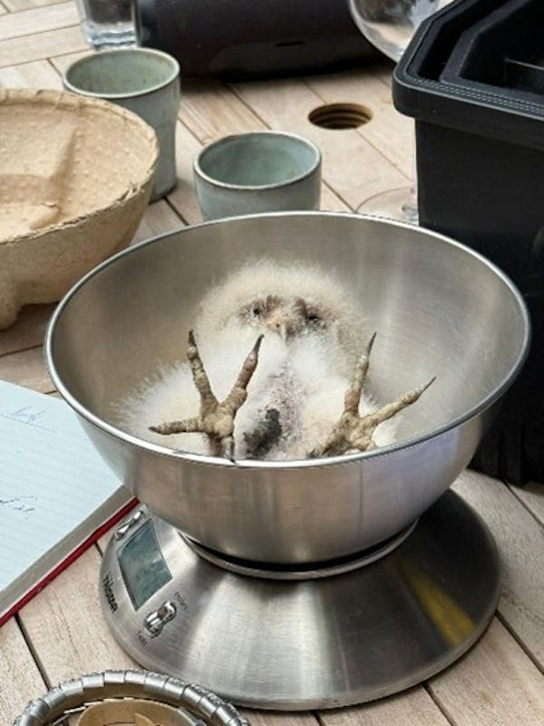Jonge kerkuil in weegschaal. Foto: Cyril Schuijren