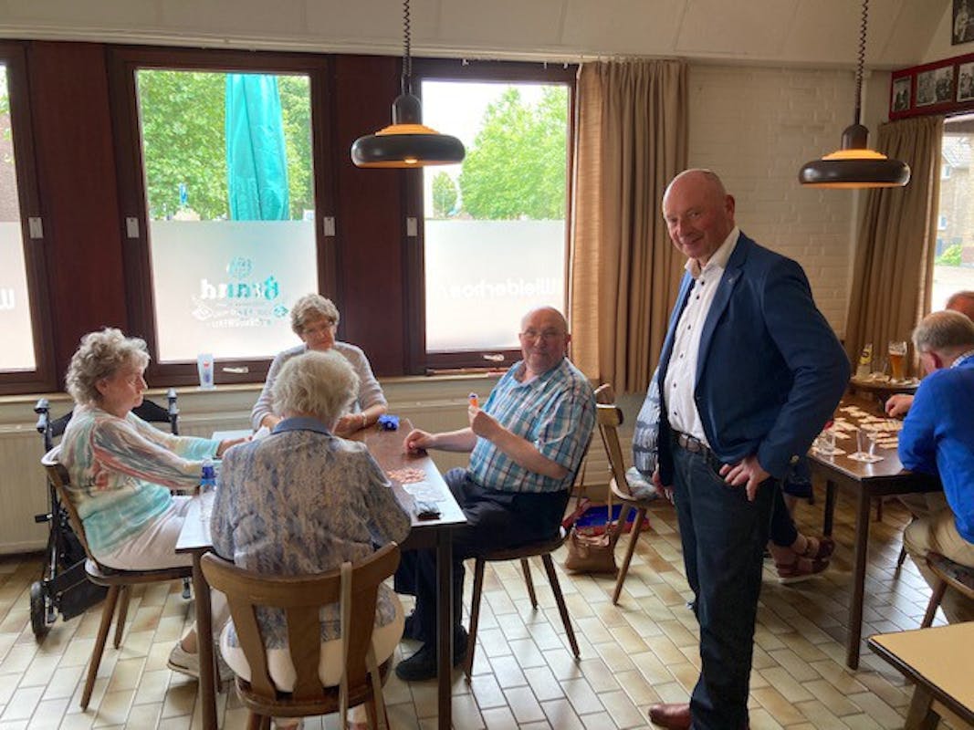 Ook hij speelde een potje jeu de boules mee en nam bij de kaarters poolshoogte over de voortgang van het spel.