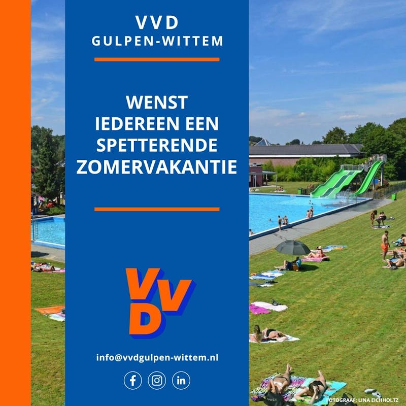 De VVD Gulpen-Wittem wenst alle inwoners van Gulpen-Wittem een spetterende en ontspannen zomervakantie toe!