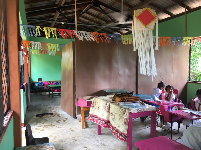 Wat betreft het schooltje, deze was ook nogal primitief. Op deze arme school zaten flinterdunne scheidingswanden en het dak was open. Hierdoor was enige vorm van klasseprivacy onmogelijk. Daarnaast waren de toiletfaciliteiten erg primitief en niet hygiënisch.