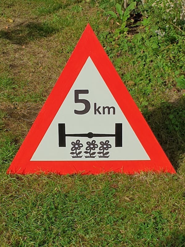 Nu kunnen de betreffende chauffeurs daar ook niet altijd wat aan doen, ze moeten nu eenmaal over dat wegdek en men ziet vaak pas te laat dat er al dat fraais midden op het wegdek ligt. MAAR daar hebben ze in Terziet/Epen wat op gevonden: een BronkBord! Een vriendelijk uitnodigend bord om even wat langzamer te rijden en de wegversiering 'tussen de wielen' te houden. Naar verluidt heeft het tijdens de laatste Bronk (nog geen week geleden) bijzonder goed gefunctioneerd en hebben daardoor alle processiegangers en bezoekers van ALLE versieringen kunnen genieten.